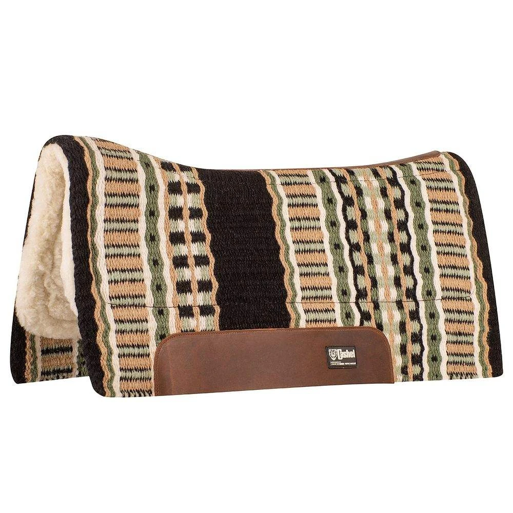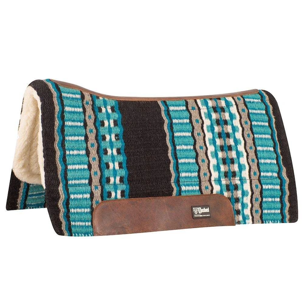 The Cashel Blanket Top Performance Felt Pad consists of a 3/4″ pressed felt layer with a merino fleece underside and a woolen top in a blanket style. The pad also features distressed leather wear leathers, adding to its durability. It comes in four fresh color options.