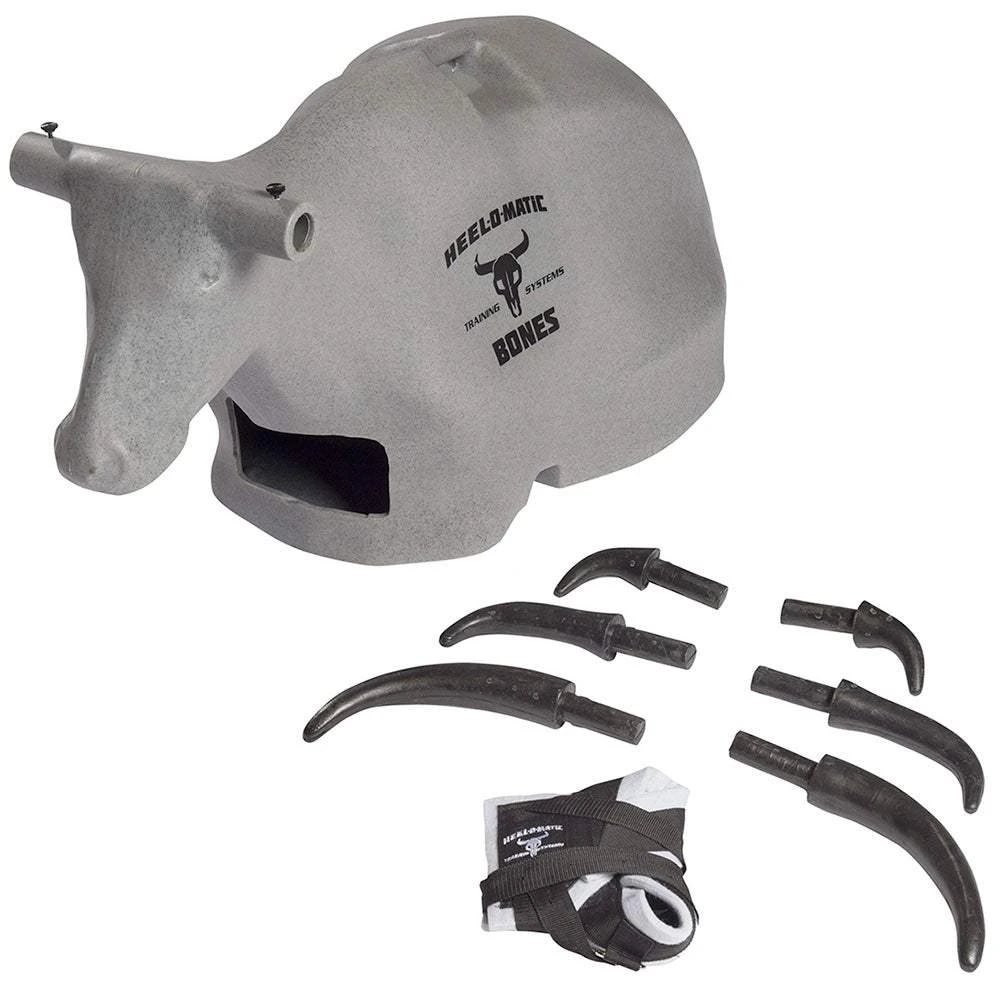 The Heel-O-Matic Bones Heading Dummy is a great option for both PRCA pros and novice ropers alike. Crafted from durable, molded plastic, the Bones is designed to create a realistic heading dummy that won’t tip, slip, or slide. It comes with a real horn wrap and sets of 19″, 28″ and 33″ horns that can be customized to match local livestock. Additionally, for calf and breakaway ropers, the horns can be taken off to provide a 14″ spread. The built-in handle and 45 pound weight make the Bones easy to transport. To further customize your practice sessions, 5/16″ bolts can be added to the pre-drilled spots in the base to raise, lower, or tip the head.