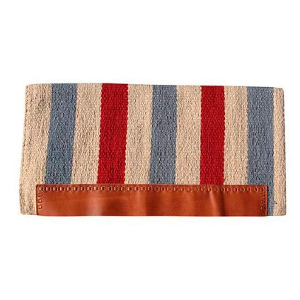 This traditional Navajo Saddle blanket is woven out of 100% wool. The double fold design provides just the right amount of protection. The authentic leather wear leathers protect the wool fibers from the saddle.