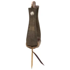 Beautiful oak leaf pattern tooling on a ladies size natural leather spur strap. Stainless steel center bar buckles.
